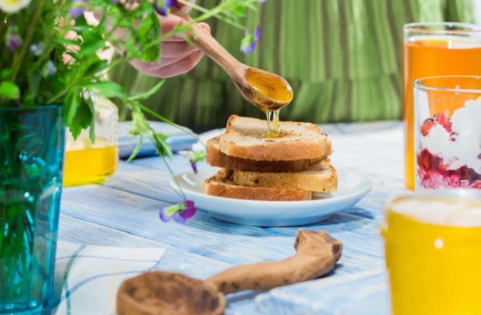 الفطور. قطعة من التوست المحمص مع ملعقة وسط من العسل، كوب من الزبادي غيرالمحلى، كوب من القهوة من دون سكر.