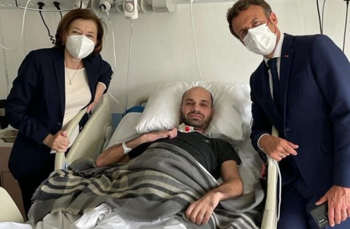 زار الرئيس الفرنسي إيمانويل ماكرون والسفيرة الفرنسية في لبنان آن غريو أحد العسكريين في الجيش اللبناني الذي يتلقى العلاج في إحدى مستشفيات باريس بعد إصابته بجروح بالغة العام الماضي خلال مداهمة لقوة من مديرية المخابرات في البقاع لكبار تجار المخدرات.