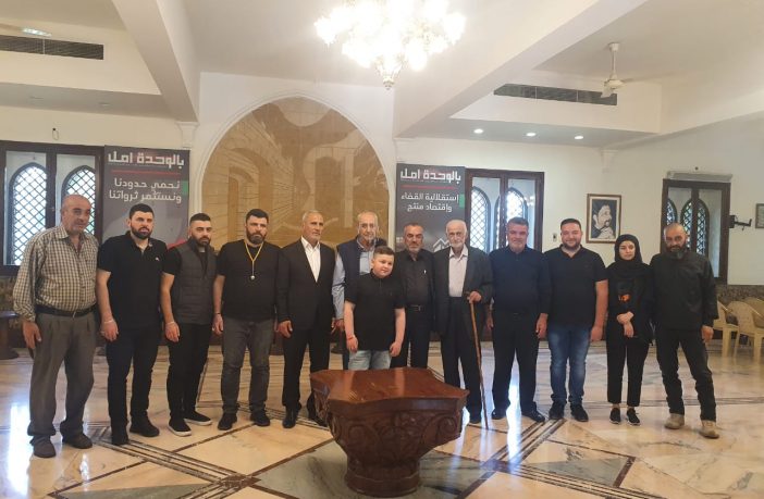 استقبل رئيس مجلس النواب الاستاذ نبيه بري في قاعة أدهم خنجر في دارته في المصيلح رئيس بلدية بنعفول السيد توفيق الرز والد الشهيد علي توفيق الرز على رأس وفد من اشقاء الشهيد واعمامه وافراد أسرته الوفد شكر للرئيس بري وحركة أمل وقيادتها مواساتهم برحيل الشهيد علي وبلسمة جراحات المصابين .