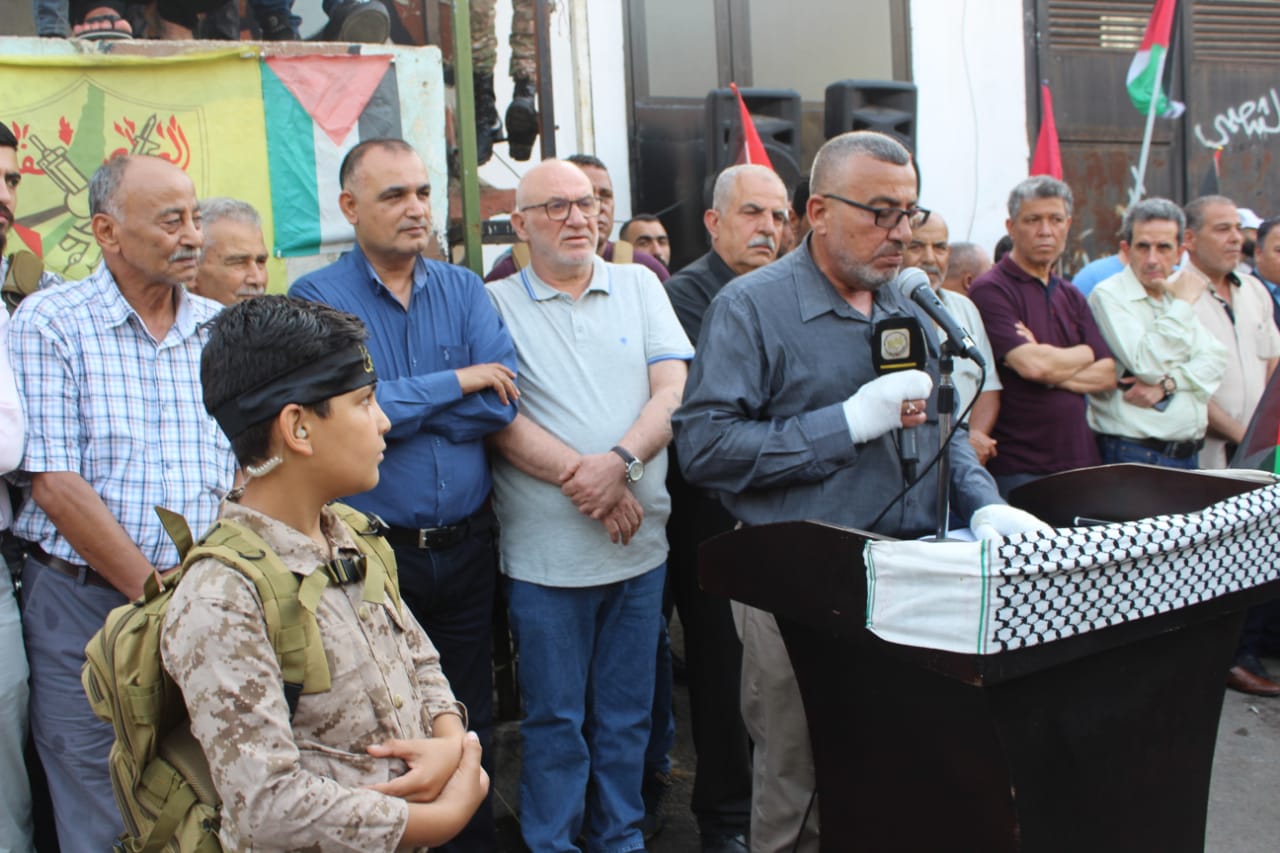 وأكد أننا شعب واحد في الوطن والشتات ونرفض وندين جرائم ممارسات الاحتلال الصهيوني وقطعان المستوطنين ضد أهلنا وشعبنا في الوطن، وأن شعبنا في الشتات لن يتخلى عنهم ولا عن ذرة تراب في فلسطين، وأن القدس عاصمة دولة فلسطين الأبدية والتاريخية ولو كلفنا الأمر التضحية بالدماء.