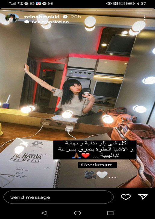 وحرصت مكي، خلال مقاطع الصور والفيديو التي شاركتها عبر خاصية “ستوري” في حسابها على “إنستغرام”، على إظهار كافة التفاصيل المتعلقة بآخر يوم تصويرٍ لهم، منذ بدايته وحتى لحظة الاحتفال، حيث نشرت في البداية صورةً لها من داخل الكرفان الذي خصص لها خلال فترة تصوير الفيلم، معلقةً عليها بأن كل الأشياء في حياتنا لها بداية ونهاية، إلا أن اللحظات الجميلة تمر بسرعة.