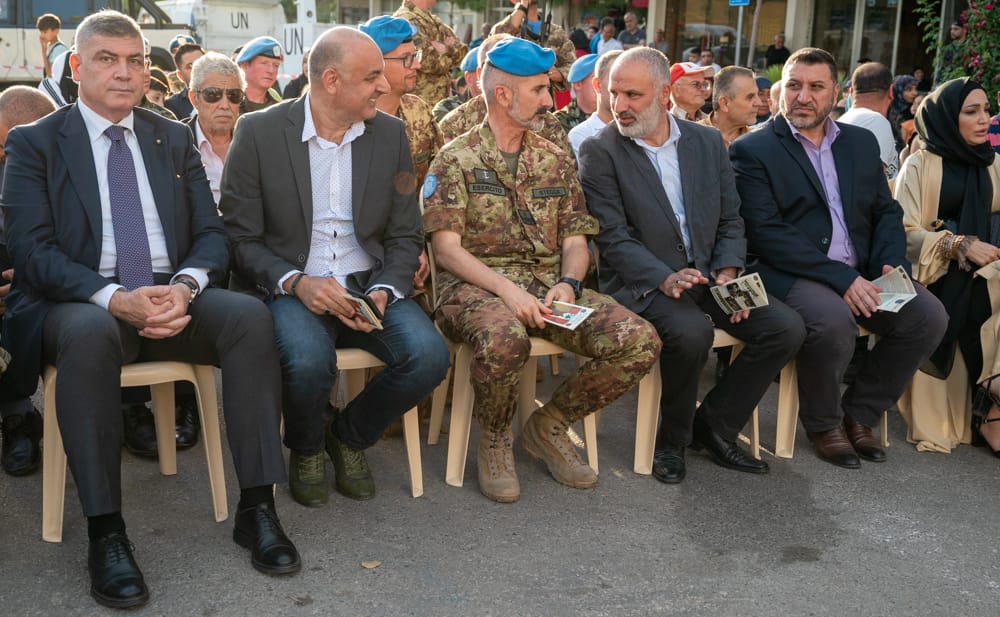 وقد حضر الحفل قائد القطاع الغربي لليونيفيل الجنرال الإيطالي ماسيميليانو ستيكا، قنصل إيطاليا الفخري الأستاذ احمد سقلاوي، رئيس بلدية بنت جبيل المهندس عفيف بزّي، رئيس اتحاد بلديات بنت جبيل السيد رضا عاشور، مدير مكتب امن بنت جبيل وتبنين في الجيش اللبناني العقيد محمد هاشم، العقيد سهيل وزنة نيابة عن قائد قطاع جنوب الليطاني في الجيش اللبناني، الرائد نهاد عون نيابة عن قائد فوج التدخل الخامس، رئيس مركز امن عام بنت جبيل النقيب حسن نمر، السيدة رماح خشاب، الدكتورة ريمان عون، الحاج حسان الصغير، رؤساء بلديات و مدراء مدارس ومعاهد وفاعليات محلية وتربوية من المنطقة وضباط ايطاليين وايرلنديين ومن الجيش اللبناني.