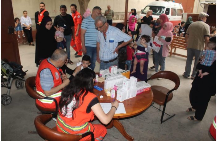 برعاية ودعم من سفارة دولة فلسطين في لبنان و في إطار الحملات الطبية التي ينفذها الهلال الأحمر الفلسطيني / مستشفى الشهيد محمود الهمشري في المخيمات والتجمعات الفلسطينية في لبنان لتطال كل الجنسيات دون تمييز .