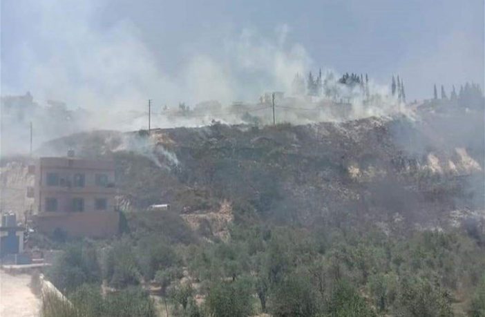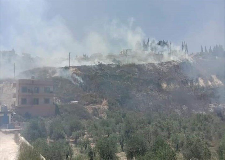 وبعد الظهر، اندلعت النيران في المنطقة الواقعة بين بلدتي حاروف وشوكين ولامست النيران المنازل السكنية في مجمع الصدر في المنطقة. وعملت فرق الدفاع المدني والهيئة الصحية والرسالة على اخمادها، حيث تبين ان السبب الرئيسي لاندلاع الحرائق هو قيام مجهولين باشعال النيران في اكوام النفايات المنتشرة في المنطقة للتخلص منها مما تسبب بامتداد النيران الى المساحات الزراعية والاعشاب.