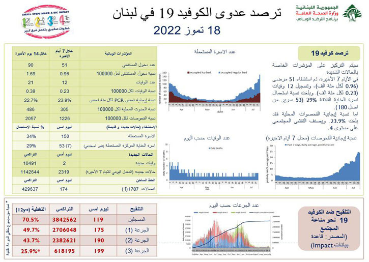 أخر الأخبار وزارة الصحة : تسجيل 2319 إصابة جديدة بكورونا وحالتي وفاة By GH يوليو 18, 2022 لا توجد تعليقات أعلنت وزارة الصحة العامة تسجيل 2319 إصابة جديدة بكورونا وحالتي وفاة في الساعات الـ24 الماضية. كورونا لبنان وزارة الصحة