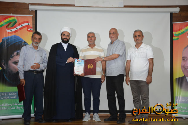 وقال شرف الدين أن لبنان يمرّ اليوم بأصعب مرحلة منذ تاريخه، حيث تتوالى الأزمات على كل الأصعدة وتشتد الكيديات ومحاولات بثّ الفتن هنا وهناك.. وهي فترة تتطلب منا الصمود والوحدة والتماسك في وجه كل المطبات حتى نعبر بالبلد الى بر الأمان، مشدداً على الدور الأساسي والمحوري للمكرمين في نقل الوقائع بشفافية ومصداقية الى المجتمع وإظهار متانة الإنتماء وروحية العمل كما علّمنا إمامنا سماحة السيد موسى الصدر، واتباع ذات النهج الذي سار عليه حامل الأمانة دولة الرئيس نبيه بري في الحوار وتدوير الزوايا بعيداً عن ذبذبات الطائفية السياسية والنفسية علنا ننهض سوياً بالوطن ونحقق الإنماء اللازم للإرتقاء بحياة أفضل.
