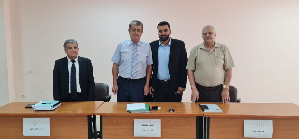 وتألفت لجنة المناقشة من الدكتور علي رمال رئيسا ومناقشًا والدكتور أسامة كبارة مشرفًا والدكتور يقظان التقي مناقشًا ..