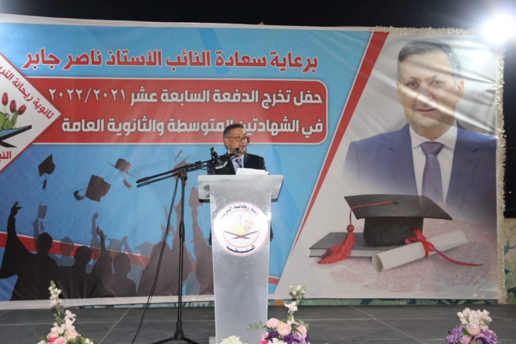 رعى عضو كتلة التنمية والتحرير النائب ناصر جابر حفل التخرج السنوي لثانوية ريحانة التربية – النبطية للشهادتين المتوسطة والثانوية العامة بحضور مديرة الثانوية المربية هلا الصبوري المسؤول التربوي لحركة امل المنطقة الاولى المحامي محمد حجازي اعضاء الهيئة التعليمية وحشد من اهالي الخريجين.