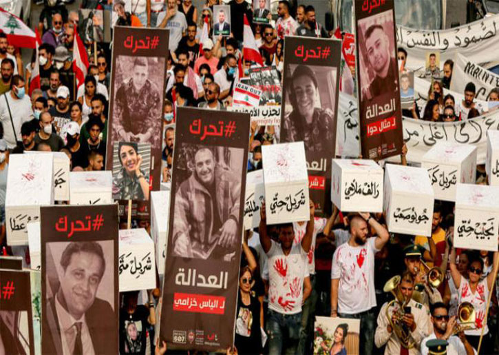 تستمرّ المسيرة على وَقْع هتاف يشقّ طريقه من القهر إلى الحنجرة: «فلتسقط دولة النيترات». هتاف آخر: «فلتسقط الحصانة أمام دموع الأمهات». ثم تصدح أغنية الوجع العصيّ على الشفاء: «وحياة لراحلوا ولصاروا الحنين». يسير شبان بقمصان بيضاء كُتب عليها الإنذار – الرجاء: «العدالة آتية». يصدّقون الأمل، فتقول شابة وشقيقتها الجريحة إلى جانبها تشعر بتخبّط الأحاسيس: «لولا فكرة العدالة لما تحمّلنا هول المأساة. لن نسكت».