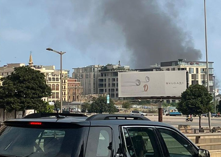 وعلى الفور هرعت فرق الدفاع المدني، وفوج اطفاء بيروت الى المكان وتعمل على اطفاء النيران.
