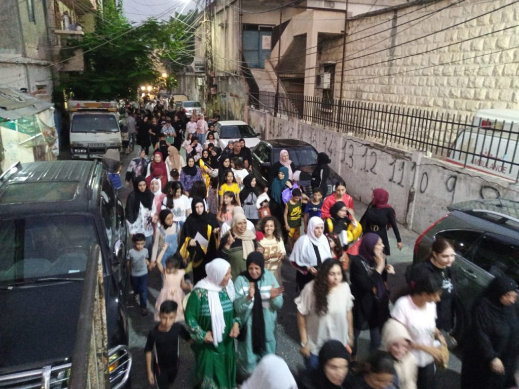 من ثم انطلقت المسيرة الحاشدة حيث جابت شوارع مخيم البص منددة ومستنكرة صمت الدول العربية والمجتمع الدولي على جرائم الاحتلال الصهيوني في قطاع غزة، ومرددة الهتافات الوطنية التي تنادي بوحدة الصف الفلسطيني من أجل التصدي لجرائم الاحتلال الصهيوني بحق أهلنا الأمنين في قطاع غزة وكل فلسطين.