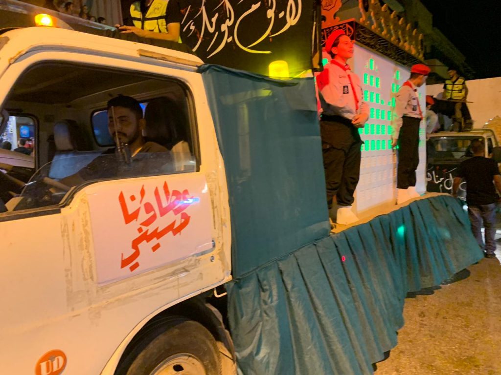 و إنّ موكب العشق الحسيني سوف يكمل جولته مساء هذا اليوم عند الساعة ٨:٣٠ في كافة شوارع المدينة.