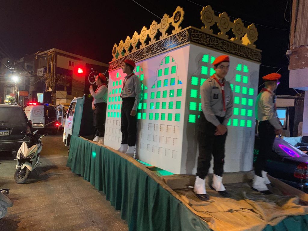 جال موكب العشق الحسيني في مدينة صور حاملاً المجسم الضخم لضريح الإمام الحسين(ع) و غيره من المجسمات التي تنقل إلينا أحداث الطف. حيث عمل أهل المدينة المتشوقين لزيارة كربلاء على كتابة رسائلهم الممتلئة بدموع الإشتياق وضعوها داخل هذا المجسم ليتم إرسالها و وضعها في ضريح الإمام الحسين(ع) في كربلاء.
