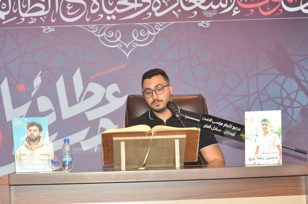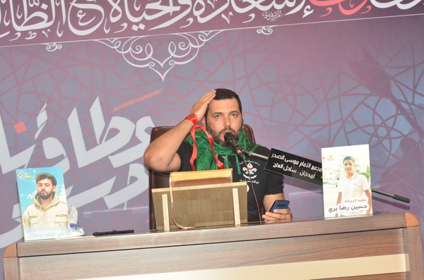 واسبوع فقيد الشباب والإغتراب المرحوم الكشفي حسين رضا بري في مجمع الإمام الصدر الثقافي مع خادم منبر أهل البيت (ع) فضيلة الشيخ غسان درويش بحضور رئيس جمعية البر والتعاون الحاج محمود ناصر الدين المدير الإقليمي لطيران الشرق الأوسط السيد جواد الموسوي فعاليات اقتصادية واجتماعية وحشد غفير من محبي أهل البيت (ع)