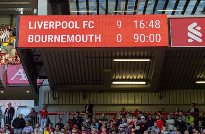 وذكرت شبكة “أوبتا” العالمية للأرقام والإحصائيات أن تلك هي المرة الأولى في الدوري الإنجليزي والتي ينجح فيها ليفربول أن يسجل تسعة أهداف في مباراة واحدة بالدوري الإنجليزي.