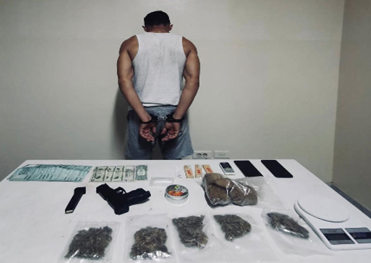 وضبطت بحوزته كميّة من مادّتي الماريجوانا، وحشيشة الكيف، معدّة للترويج، ميزان وأكياس نايلون تُستخدم في توضيب المخدّرات، مسدّس حربي، هاتف خلويّ ومبلغ مالي.