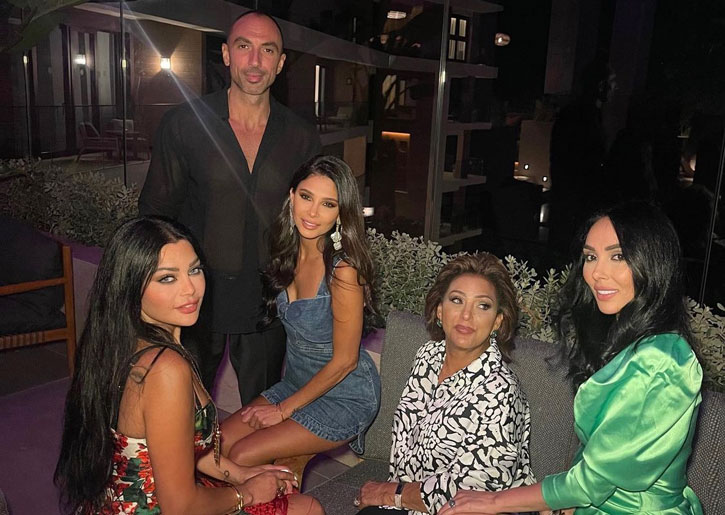 وكانت هيفاء وهبي قد تألقت في حفل عشاء في قبرص، جمعها بأفراد عائلتها وشقيقتها هناء وخطيب شقيقتها. واختارت هيفاء فستاناً بنقشة الورود من دون كمّين، باللونين الأحمر والأخضر، وتركت شعرها منسدلاً على كتفيها، وتزين الفستان بالشراريب على جهة الساقين.