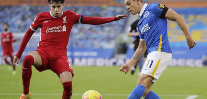 فرض برايتون التعادل على ضيفه ليفربول (1-1)، في المباراة التي احتضنها ملعب فالمر اليوم السبت، ضمن لقاءات الجولة العاشرة من الدوري الإنجليزي الممتاز.