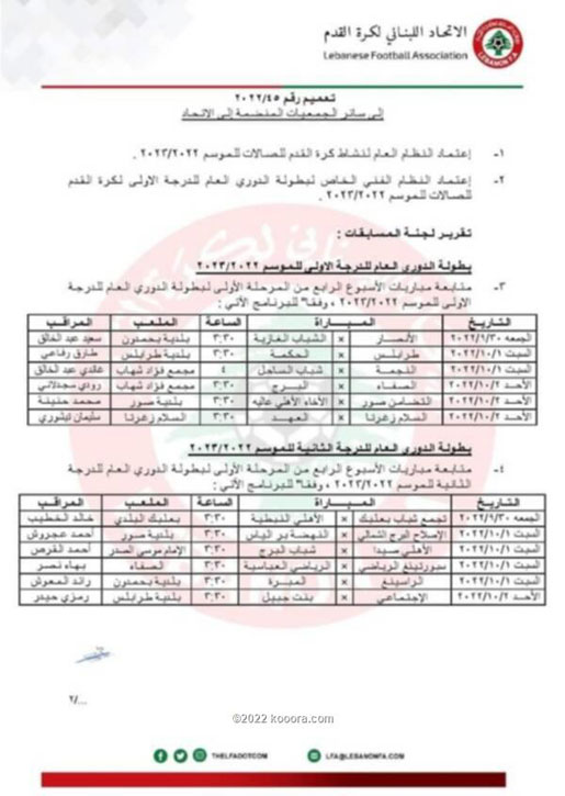 أقر الاتحاد اللبناني لكرة القدم، اليوم الاثنين، استئناف الدوري بدءًا من الجولة الرابعة.