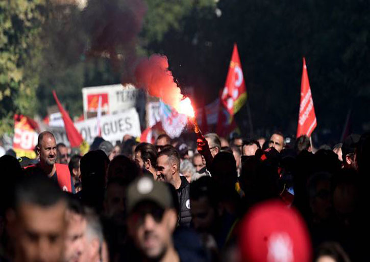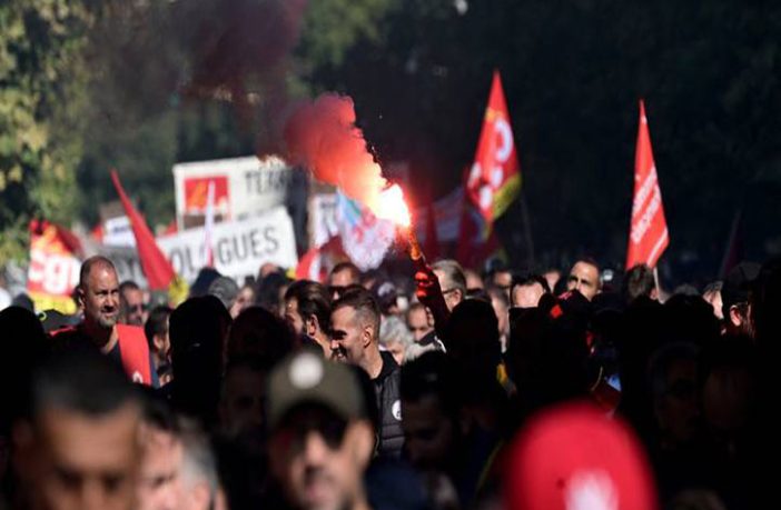 شهدت فرنسا، اليوم الخميس، إضراباً دعت إليه عدة نقابات عمالية يسارية للاحتجاج على رفع سنّ التقاعد وللمطالبة بزيادة الأجور، فيما قال رئيس الاتحاد العام للعمل فيليب مارتينيز “إنه تحذير أول للحكومة ولأصحاب العمل للبدء بسرعة في مفاوضات الأجور”.