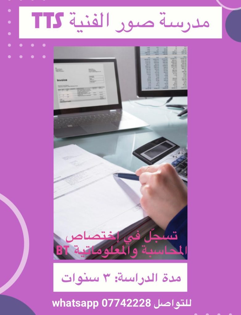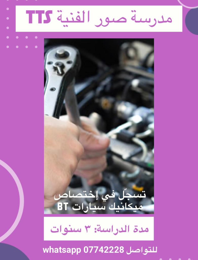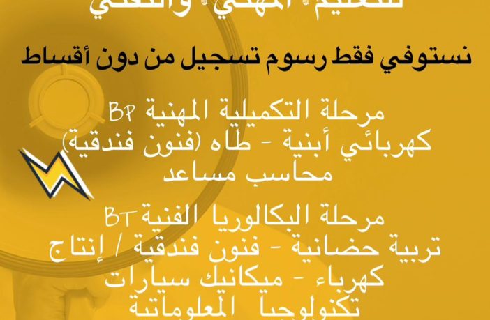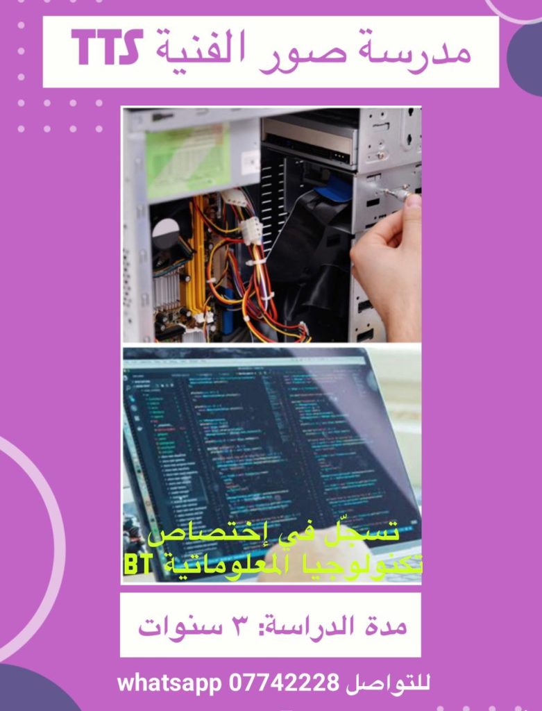 ✅ لمن أنهى صف الثاني ثانوي بنجاح يمكنه تقديم طلب انتساب والتسجيل في السنة الثالثة والاخيرة من مرحلة البكالوريا الفنية BT في الاختصاصات التالية: