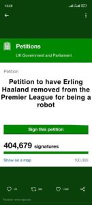وأطلق على العريضة أو الالتماس اسم “عريضة لحظر إرلينغ هالاند من كرة القدم لأنه ليس عادلا”.