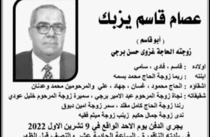 وفاة عصام قاسم يزبك (أبو قاسم)