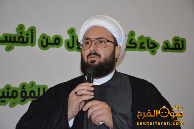 بعد تلاوة آيات من الذكر الحكيم وتقديم من الاستاذ حسن فصاعي ألقى الشيخ بسام أبو شقير كلمة جمعية المشاريع الخيرية الإسلامية تحدث فيها عن عظمة هذا النبي العظيم والرسول الكريم وبعض البشائر التي حصلت يوم ولادته صلى الله عليه وعلى آله وسلم داعيا إلى التمسك بعقيدته عقيدة التوحيد والسير على منهاجه.