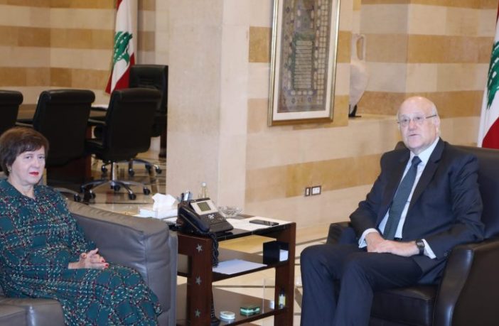 إستقبل رئيس حكومة تصريف الأعمال نجيب ميقاتي المنسقة الخاصة للأمم المتحدة في لبنان يوانا فرونتسكا صباح اليوم في السراي الحكومي.
