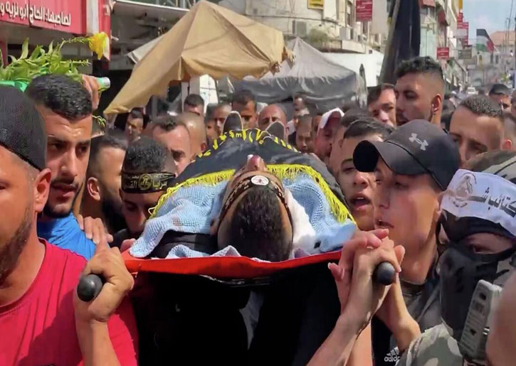 وانطلق موكب التشيع محمولاً على الأكتاف وملفوفاً بعلم المجموعة المسلحة بصفته أحد قادتها الميدانيين، من مستشفى رفيديا الحكومي بمدينة نابلس، وجاب شوارع المدينة، وسط هتافات منددة بمقتله، ومطالبة بالانتقام والرد على اغتياله.