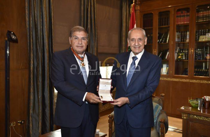 منح رئيس الجمهورية العماد ميشال عون رئيس إدارة حصر التبغ والتنباك اللبنانية “الريجي” مديرها العام المهندس ناصيف سقلاوي وسام الأرز الوطني من رتبة كومندور، ” تقديراً لعطاءاته المميزة في حقل الإدارة العامة”، وقد قلّده إياه رئيس مجلس النواب نبيه بري اليوم الاثنين في مقرّ الرئاسة الثانية في عين التينة.
