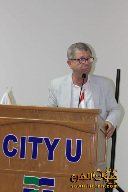 وتابع: “معكم ومع أمثالكم حضرة الاعلامي العربي العريق ومع الكوكبة الحاضرة والمرافقة من الشقيقة مصر سنتوقع نتائج ايجابية ترتقي ومتطلبات المرحلة المقبلة فنهزم بها عدونا الاسرائيلي كما هزمناه في الجنوب بفضل مقاومتنا وتلاحم الجيش والشعب والمقاومة، وإننا في جامعة المدينة cityu نواكب بحماس فعاليات معرض الكتاب العربي الثامن وبدعوة من جمعية هلا صور الثقافية وننوه بالهمة العالية للصديق د. عماد سعيد كما ان وجود قامات فكرية واعلامية وثقافية أمثالكم يحفزنا ويحملنا مسؤولية كبيرة بالارتقاء إلى مستوى أداءكم المبشر بلون جديد مشرق وبنهار عربي متألق، كما يذكرنا وجودكم بالرواد الكبار من رجال الصحافة المصرية ولا يمكننا إلا أن ننظر بعين التفاؤل فنرى الشموخ والفرادة لتعود الامة العربية سيدة الأمم بقيادة شعب مصر العظيم”.