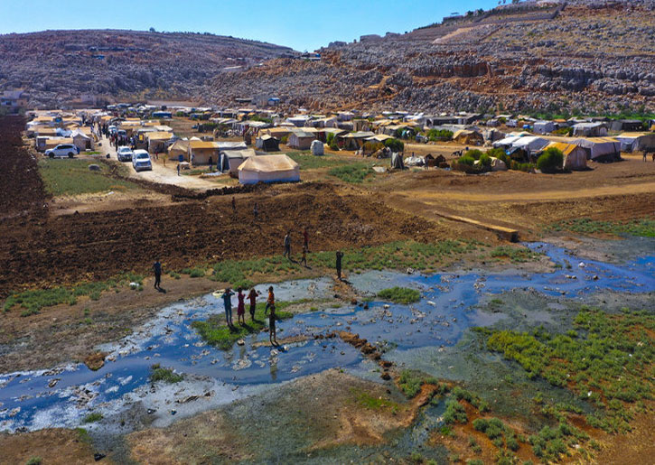 وفي محافظة إدلب السورية الخاضعة لسيطرة المعارضة، نزح معظم السكان البالغ عددهم 4 ملايين نسمة من الصراع. إنهم يعتمدون على المساعدات الدولية ويعيشون في مخيمات.