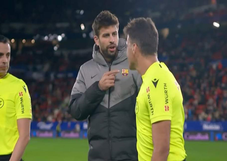 كشف تقرير حكم مباراة برشلونة وأوساسونا في بطولة الدوري الإسباني، خيل مانزانو، عن سبب طرد المدافع جيرارد بيكيه، مع نهاية أحداث الشوط الأول للقاء يوم أمس، الثلاثاء.