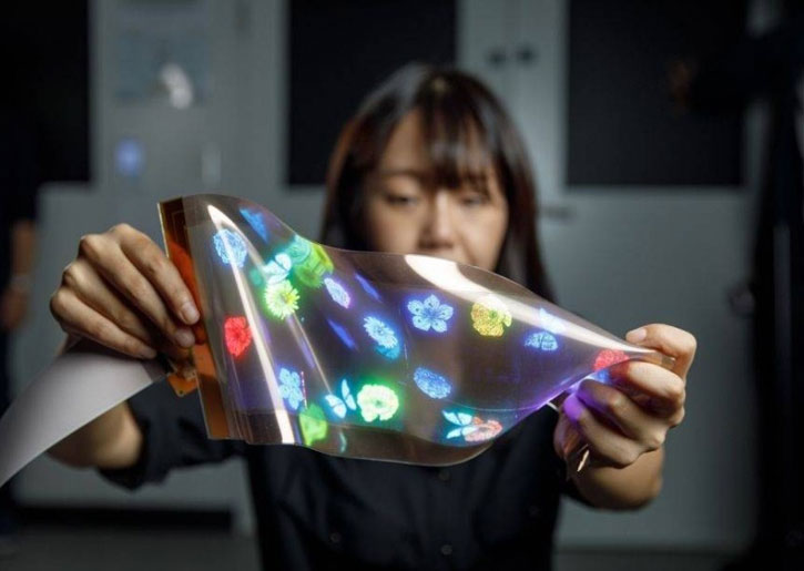ووفقاً للأنباء الصادرة عن إل جي، ستساعد مرونة الشاشة وتحملها على ترويجها تجارياً. وتعتمد الشاشة على ركيزة من نوع الشرائط المرنة المصنوعة من السيليكون المستخدم في العدسات اللاصقة.