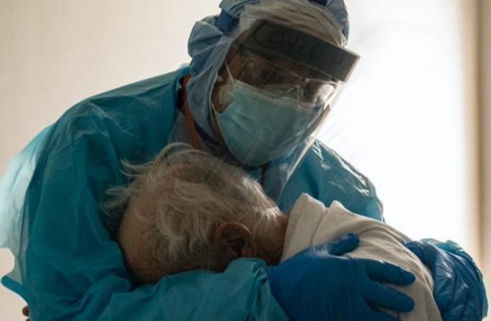 باتت الصورة التي التقطت في يوم عيد الشكر بأحد المشافي الأميركية، التي تظهر طبيبا يرتدي بزة واقية من فيروس كورونا يعانق مصابا بكوفيد 19، رمزا للمشاعر البائسة والظروف القاسية لدى عدد من ضحايا الوباء وأفراد الطواقم العلاجية.