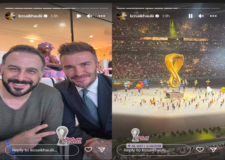 وكان لافتاً أن الممثل قصي خولي ظهر عبر خاصيّة القصص القصيرة وهو يجلس مع نجم كرة القدم السابق ديفيد بيكهام لمشاهدة حفل افتتاح المونديال 2022.