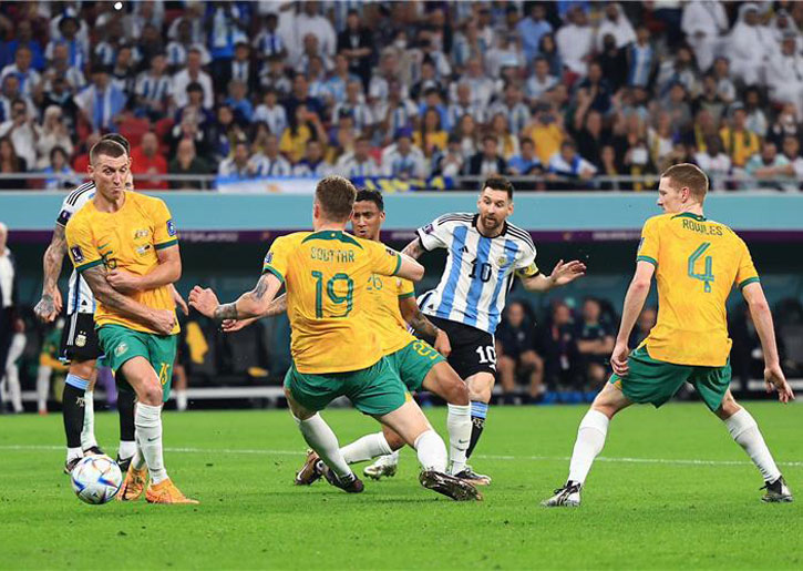 وسجل ثنائي الأرجنتين ليونيل ميسي في الدقيقة (35) وجوليان ألفاريز في الدقيقة (57)، بينما سجل هدف أستراليا الوحيد إنزو فيرنانديز بالخطأ في مرماه في الدقيقة (77).