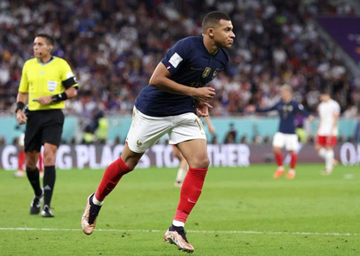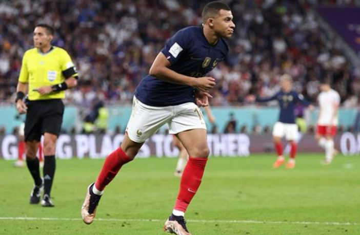 مبابي سجل هدفين في مباراة دور الـ16 من كأس العالم، في نسخته الثانية والعشرين، ضد منتخب بولندا.