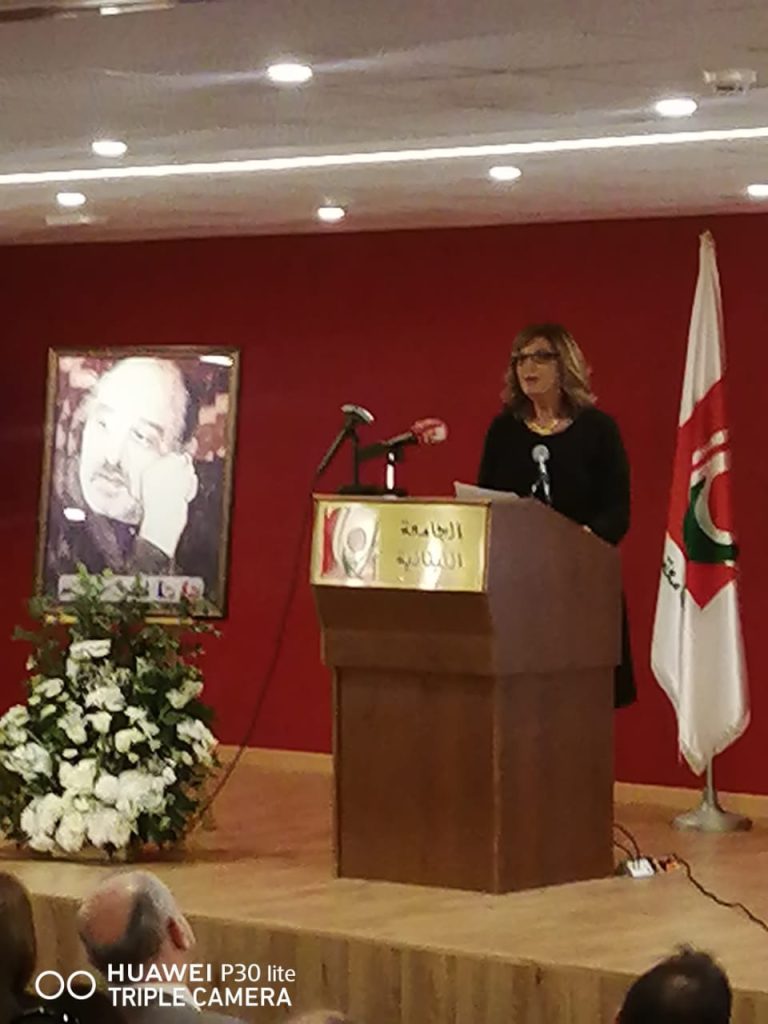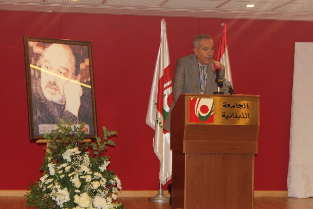 بدأ الرئيس كلمته بالقول “من هنا من الجامعة اللبنانية ومن هذا الصرح الوطني بالذات، لطالما اجتمعنا وجاهدنا، وضحينا وناضلنا كل في مجاله واختصاصه، من هنا ومن هذا الصرح لطالما احتفلنا بإنجازات، وناقشنا إنتاجات فكرية في شتى العلوم….” وأضاف “اليوم اجتماعنا مختلف ففي عيننا دمعة وفي قلبنا غصّة، عدنا نجتمع لنكرم زميلاً عزيزًا ذو القيم الناصعة والمرجعية الفكرية اللامعة، كان رائدا فكريا أعطى فأجزل بعطائه، خرّج أجيالا وأجيال. عرفناه متواضعًا، صاحب المواقف النقدية، وصاحب الرأي الحر.”