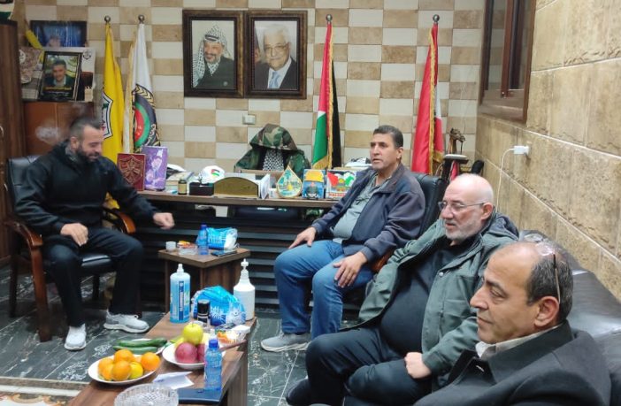 وكانت الزيارة مناسبة تداول خلالها أبناء حركة فتح مختلف الشؤون والشجون الفلسطينية والفتحاوية، حيث اكدوا على ضرورة التعاون بين كافة الأطر الحركية للنهوض بحركتنا العملاقة “فتح” لتبقى حريصة على أمن واستقرار المخيمات والتجمعات الفلسطينية في لبنان وحمايتها من كافة العابثين بأمن وأمان أبناء شعبنا، بإنتظار عودتنا إلى بلادنا الغالية فلسطين. والحفاظ على العلاقات الاخوية المتينة التي تعمدت بالدم مع أبناء الشعب اللبناني الشقيق، ولتبقى صاحبة المشروع الوطني وحارسة القرار الفلسطيني المستقل، كما وأكد على وقوفهم خلف القيادة الفلسطينية الحكيمة وعلى رأسها فخامة الرئيس محمود عباس أبو مازن ،أيوب فلسطين، الأمين المؤتمن على ثوابتنا الفلسطينية، حتى النصر والتحرير والعودة وإقامة الدولة الفلسطينية المستقلة وعاصمتها القدس الشريف.