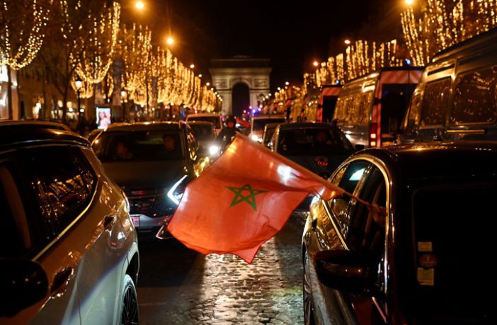 وشهد تقدم المغرب في نهائيات كأس العالم احتفالات صاخبة من قبل أنصاره في المدن التي تضم أعدادا كبيرة من المهاجرين المغاربة في جميع أنحاء العالم، ومنها العاصمة الفرنسية، باريس.
