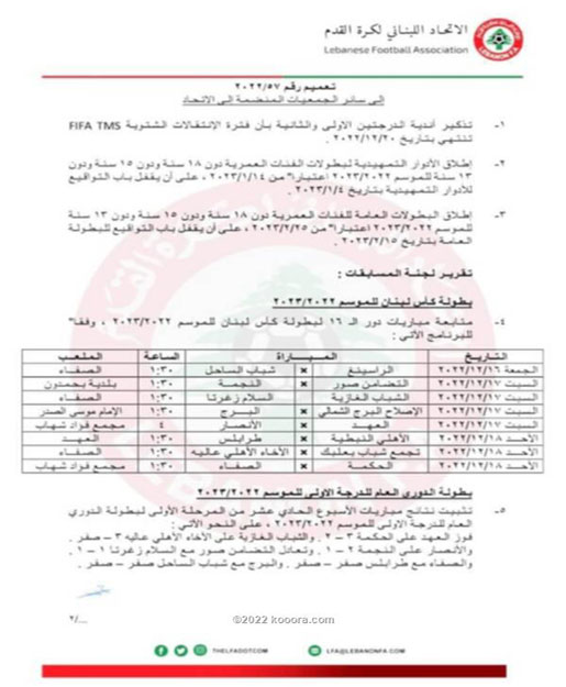 وعلى صعيد آخر، حدد الاتحاد اللبناني يوم الثلاثاء المقبل، ليكون آخر أيام سوق الانتقالات الشتوية.