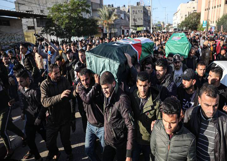 ورفع المشيّعون، الذين جابوا شوارع بمدن مختلفة من قطاع غزة، صوراً للفلسطينيين القتلى.