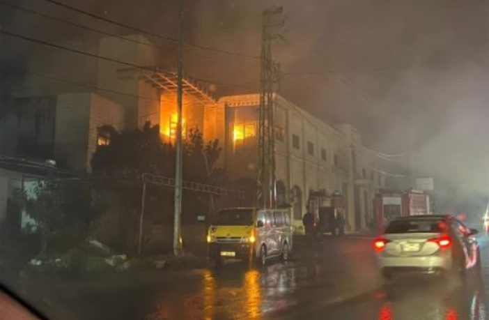 اندلع قرابة السادسة الا ربع من مساء اليوم، حريق في مستودع للمعدات الصناعية والخرضوات ومواد البناء، في جادة نبيه بري – النبطية.