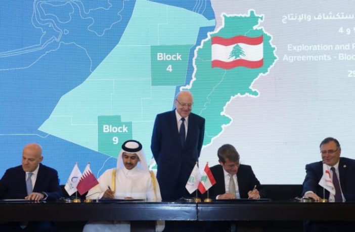 وكان رئيس الحكومة نجيب ميقاتي رعى قبل ظهر اليوم في السراي الحكومي حفل توقيع “الملحقين التعديليين لإتفاقيّتي الإستكشاف والانتاج في الرقعتين 4 و9 ، لمناسبة دخول “شركة قطر للطاقة”كشريكة مع “شركة توتال إنيرجيز”الفرنسية وشركة” إيني” الايطالية.