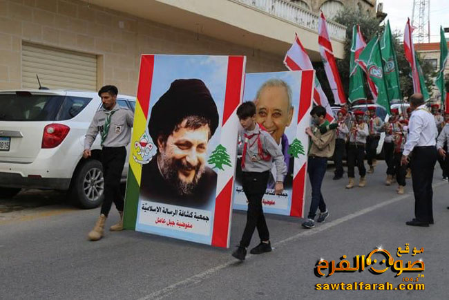 وكانت قيادة الحركة قبل بداية الإحتفال قد إستعرضت المسيرة التي نظمتها كشافة الرسالة الإسلامية والتي ضمت وحدات رمزية من فرق الدفاع المدني والفرقة الموسيقية والمسعفات الجوالة و الدليلات والكشاف والمرشدات والاشبال والزهرات والبراعم.