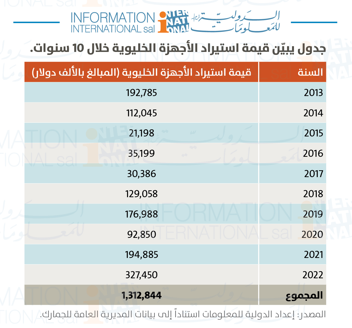 فقد تبين أنّ قيمة الأجهزة الخليوية التي تمّ استيرادها في العام 2022، وصلت إلى 327 مليون دولار مقارنةً بـ129 مليون دولار في العام 2018، أي قبل الأزمة.