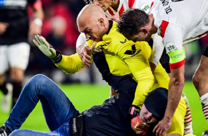 📹PSV taraftarı sahaya girerek Sevilla kalecisi Marko Dmitrovic'e saldırdı.