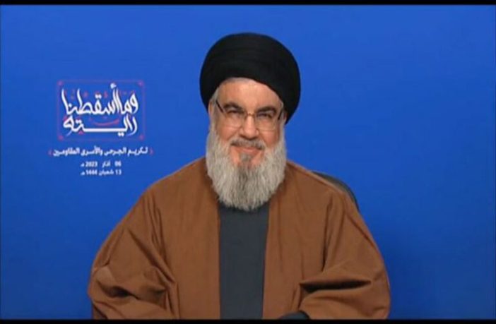 وقال السيد نصر الله: “قلنا عقب توقيع الترسيم بأننا لن نسمح للعدو باستخراج النفط إذا مَنع لبنان من ذلك”.